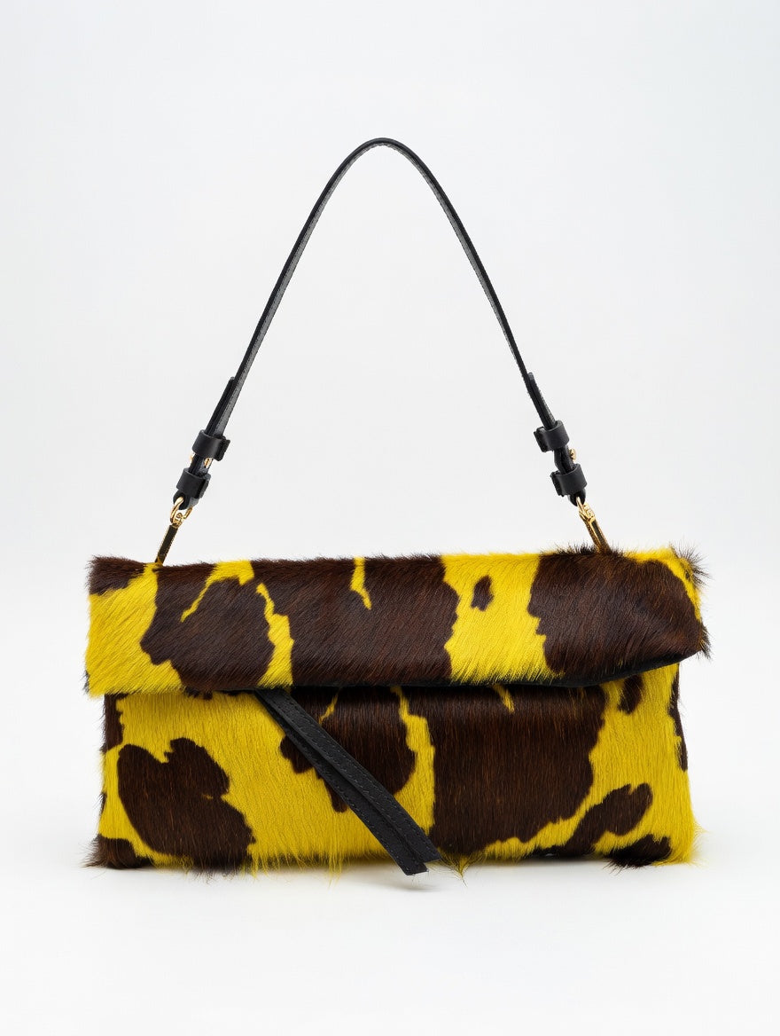 CLUTCH IN CAVALLINO CON MANICO IN PELLE E TRACOLLA IN CATENA ENTRAMBE STACCABILI. MISURA30X16X2
