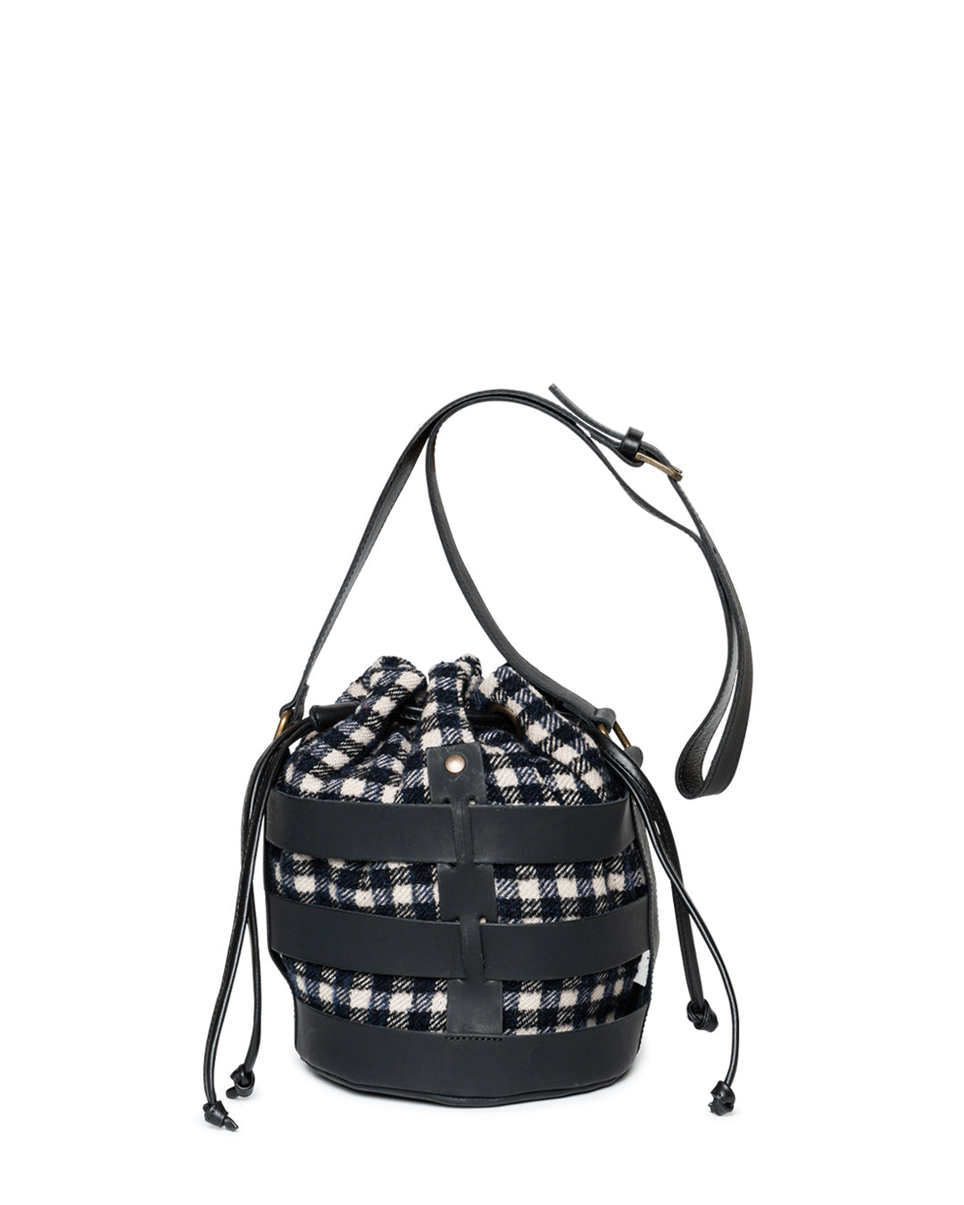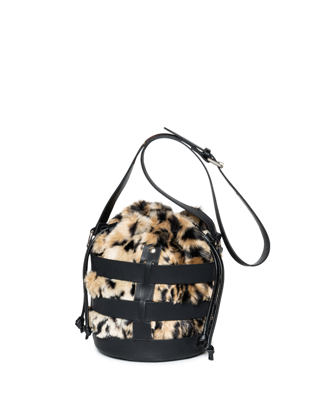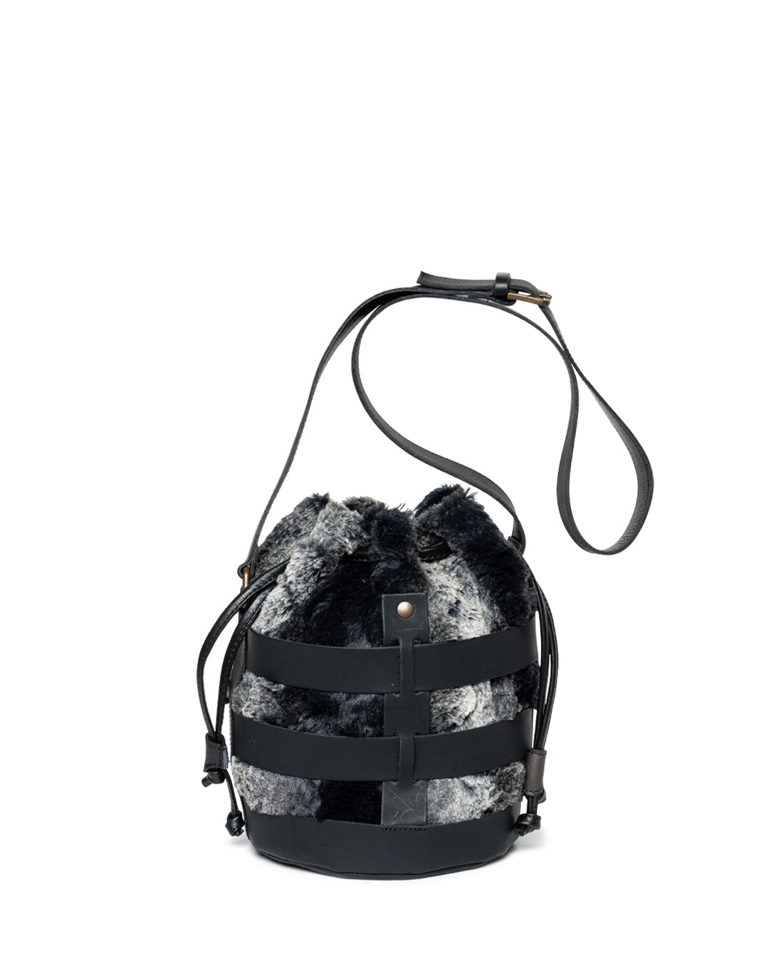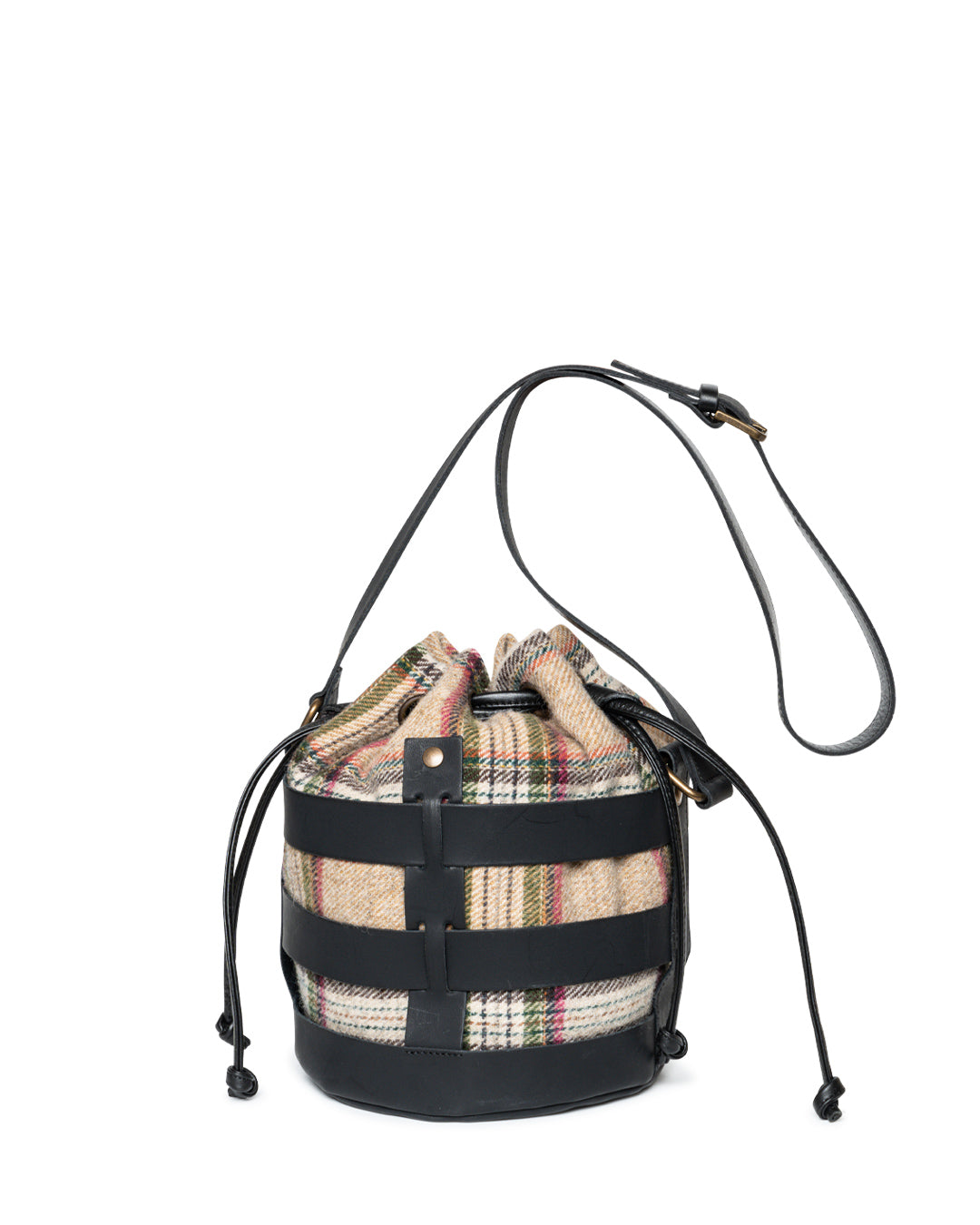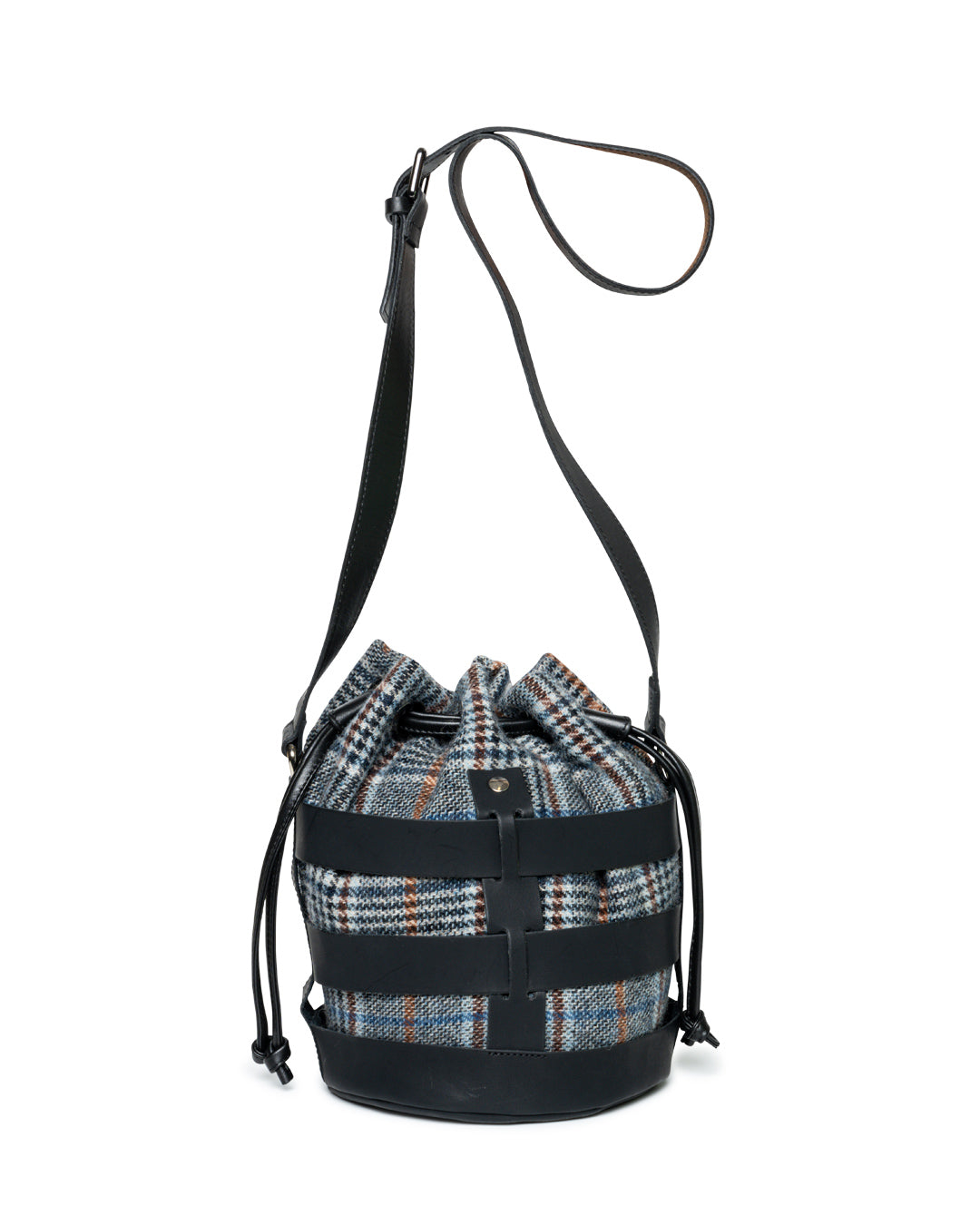 Bucket in leather and textil size: 20 x 26 x 20